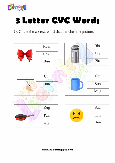 3 Letter CVC Words Worksheets for Kindergarten – Activity 6 View All Worksheets