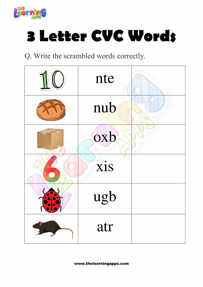 3 Letter CVC Words Worksheets for Kindergarten – Activity 9 View All Worksheets