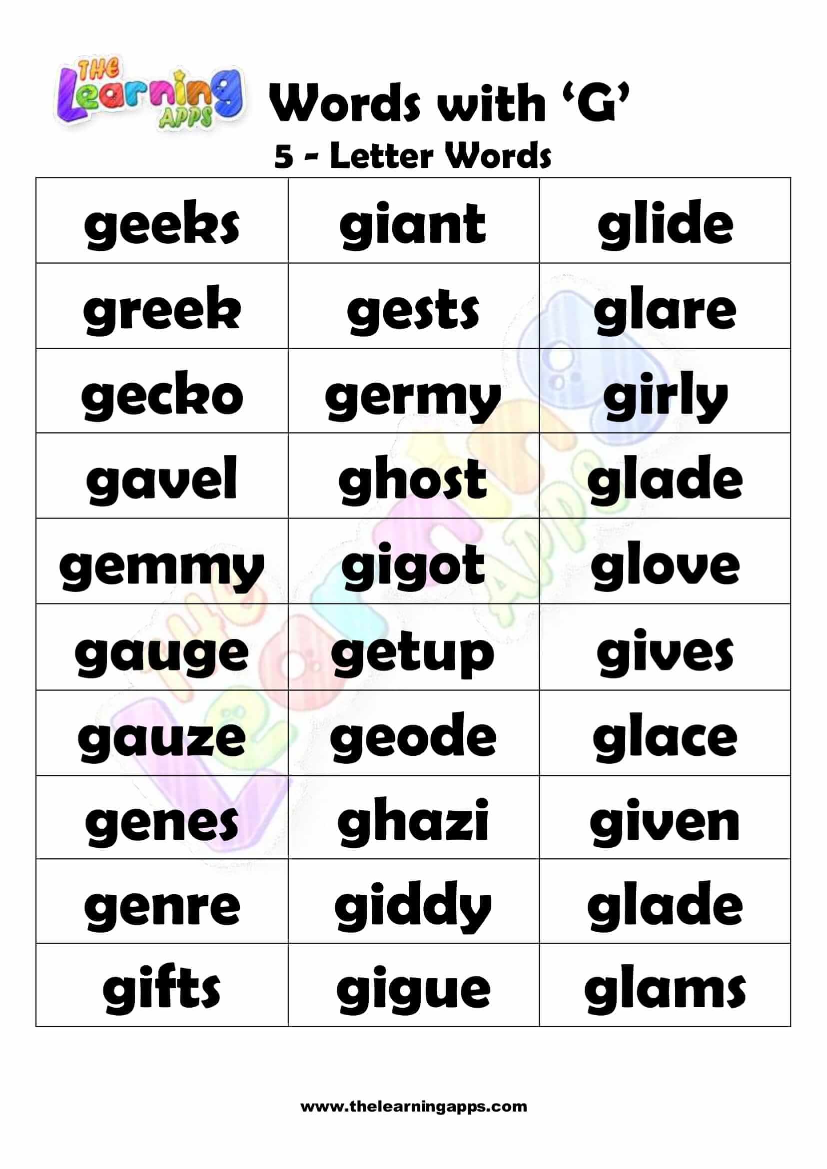 5 LETTER WORD STARTING WITH G-2 View All Worksheets