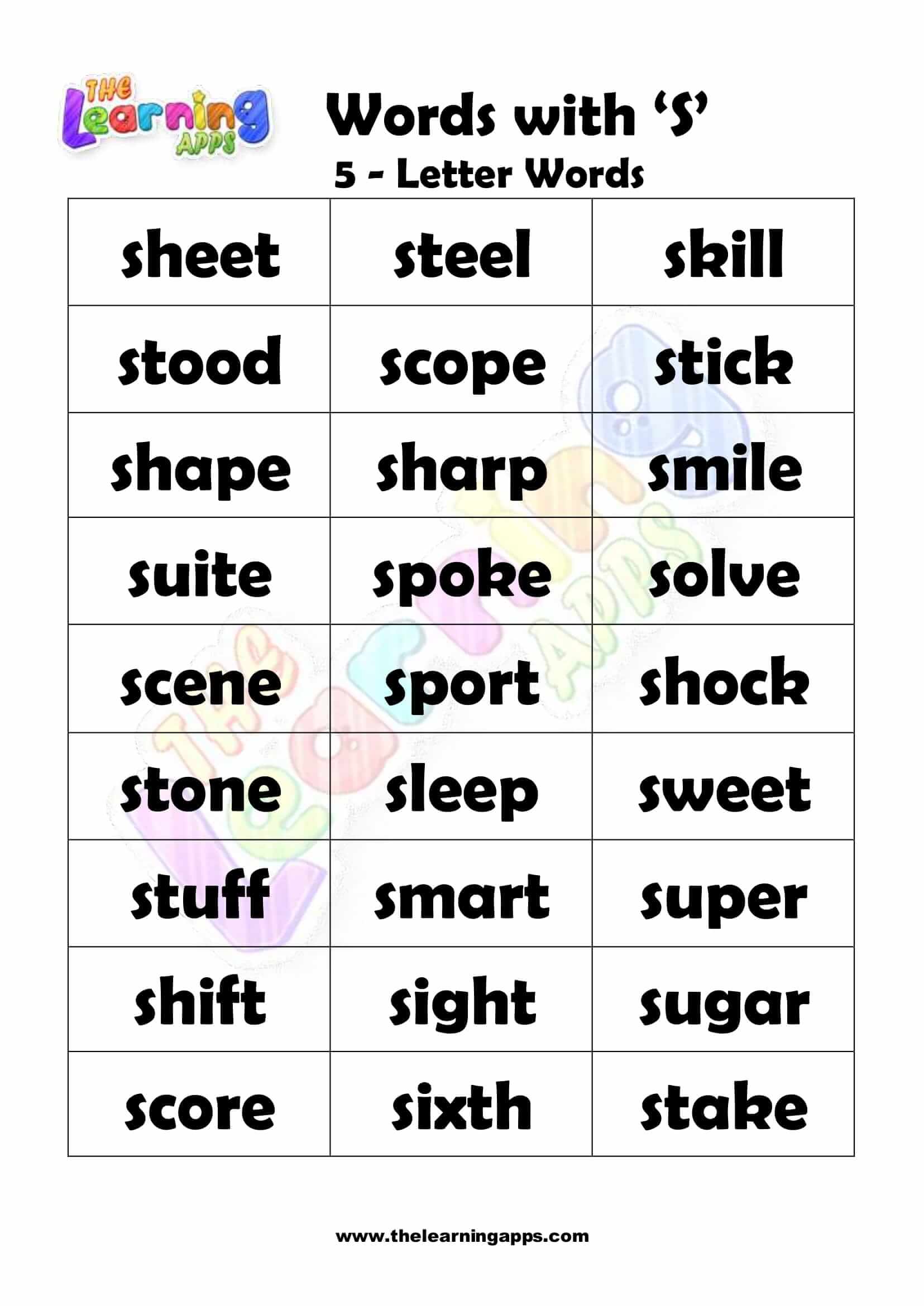 5 LETTER WORD STARTING WITH S-2 View All Worksheets