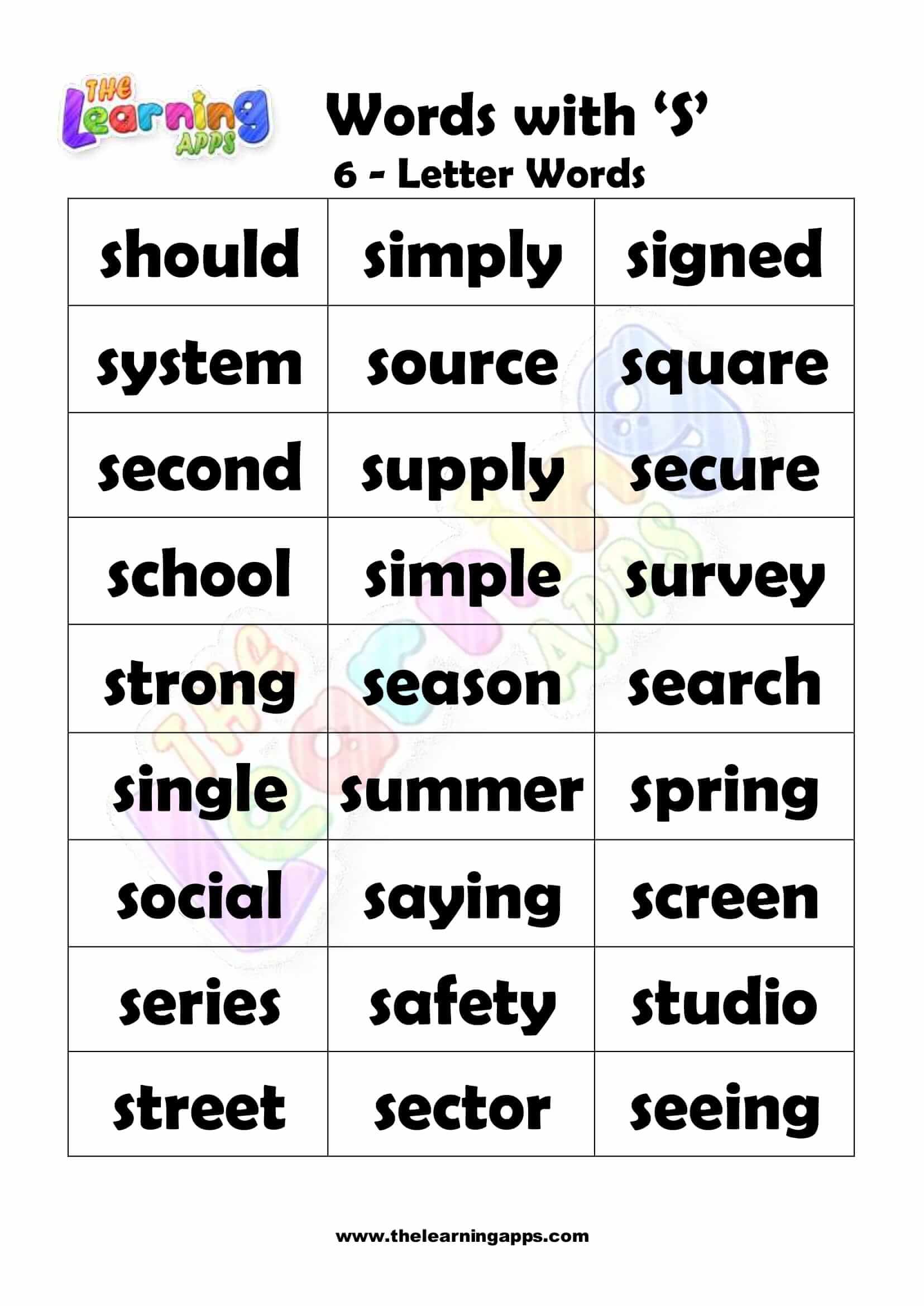 6 LETTER WORD STARTING WITH S View All Worksheets
