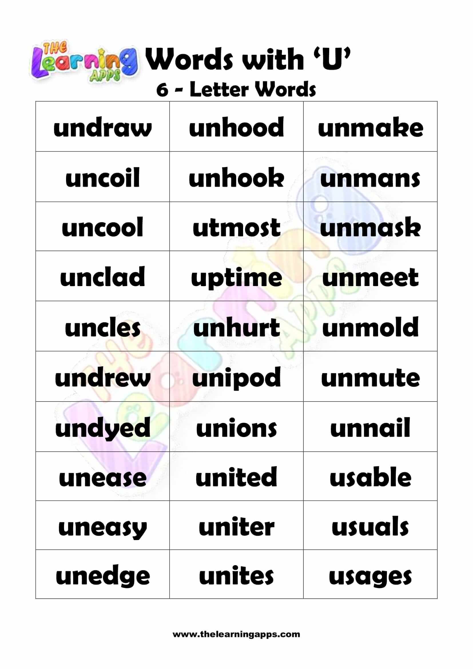 6 LETTER WORD STARTING WITH U-3 View All Worksheets