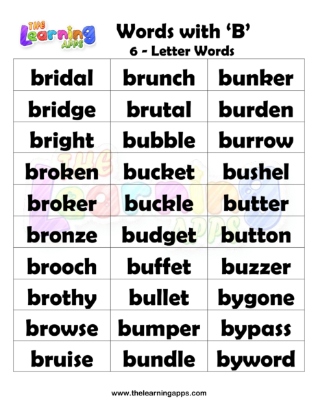 Download free printable 6 Letter words that start with B. Introduce kids to these Alphabet worksheets before starting their education. Try Now It’s free!