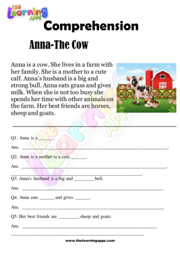 Download our free printable comprehension worksheets for grade 1. Anna – The Cow comprehension worksheet is one the many worksheets we have that are best way to engage your child in learning.