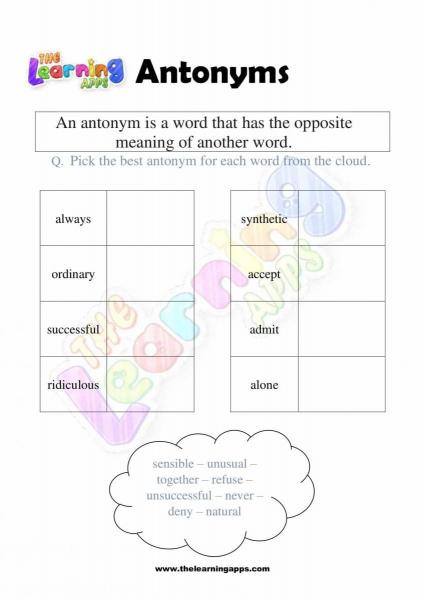 Views: 1,874 Coming soon.. Antonyms Grade 1 Worksheet 09 View All Activities Here you will have an educational and free printable Antonyms Grade 1 Worksheet for kids. By doing these worksheets, kids will learn about Antonyms in a fun and interactive way. Hit the download button and let the learning begin! Download View Category Antonyms Subject English Share This Related PostsAntonyms Grade 1 Worksheet 10August 16, 2022Antonyms Grade 1 Worksheet 08August 16, 2022Antonyms Grade 1 Worksheet 07August 16, 2022Antonyms Grade 1 Worksheet 06August 16, 2022Antonyms Grade 1 Worksheet 05August 16, 2022Antonyms Grade 1 Worksheet 04August 16, 2022