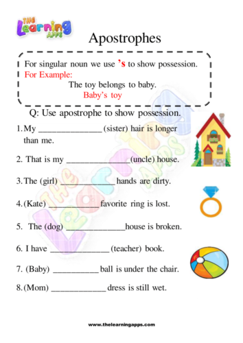 Click on the download button and get this free apostrophe worksheet 01. This worksheet helps kids develop a basic understanding of how to verbally or in a written form express possession of anyone marked by ‘s. Hit on the download button and get this free apostrophe worksheet, and make learning fun, exciting, and engaging.