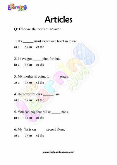 Articles Worksheets for Grade 3 – Activity 8 View All Worksheets