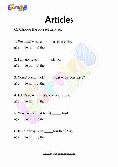 Articles Worksheets for Grade 3 – Activity 9 View All Worksheets