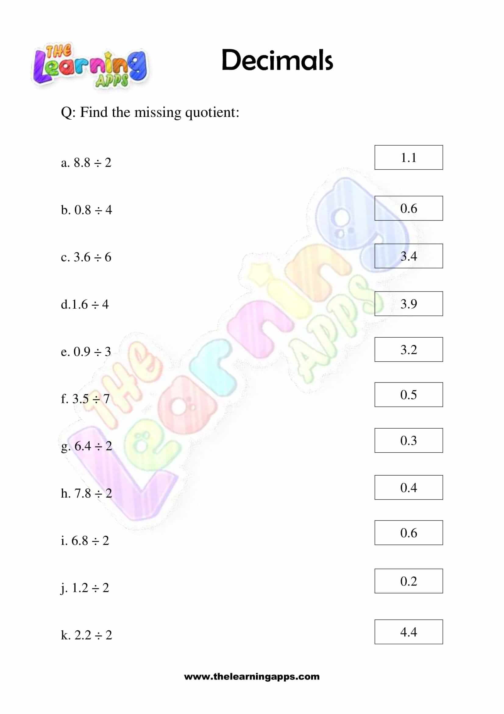 Click the download button and get the educational and free Decimal Worksheet 07 for 1st Grade kids. By doing these worksheets, kids will learn the use of decimals in their daily life in a fun and interactive way. Hit the download button and let the learning begin!