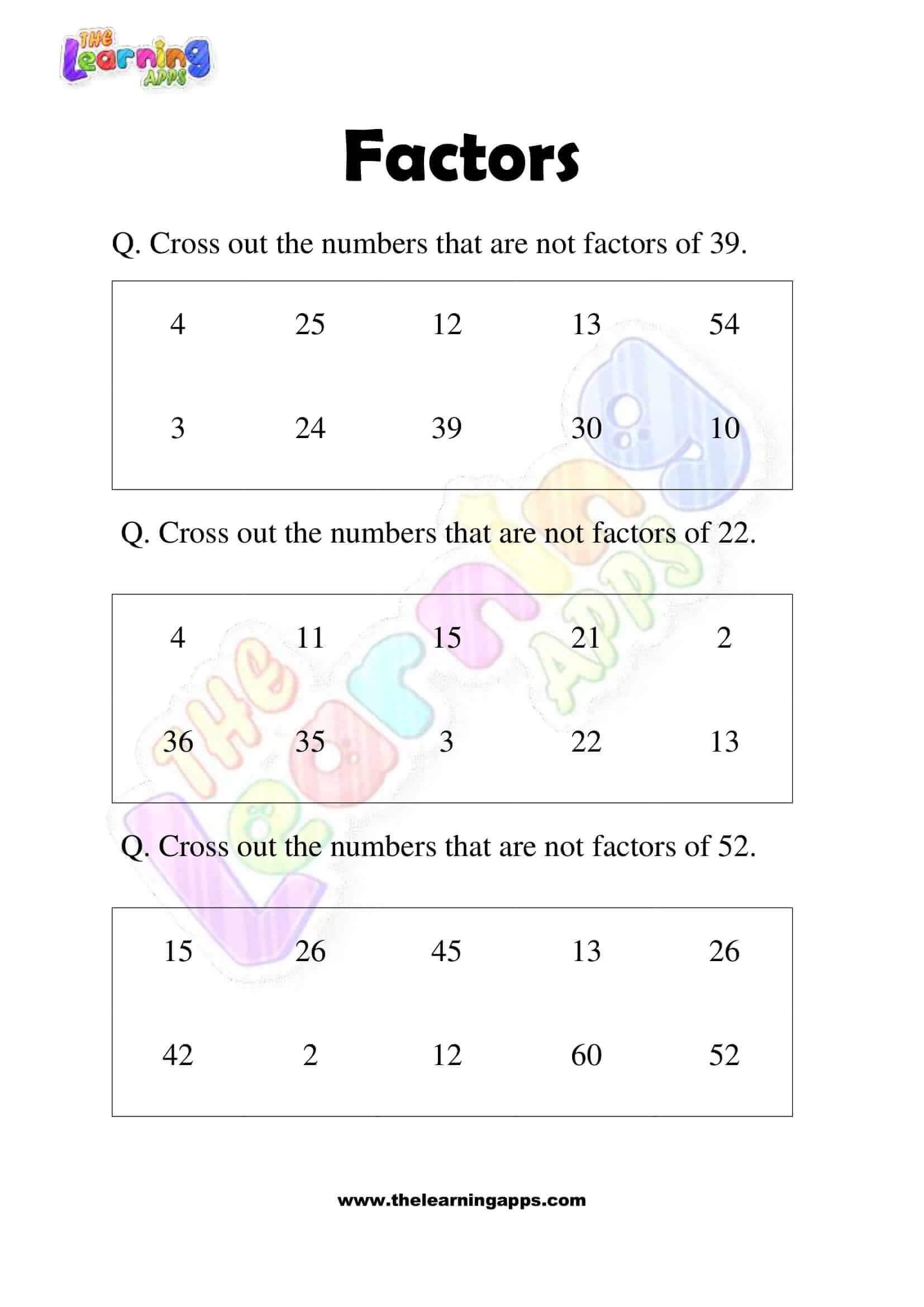 The factors worksheets for grade 3 will help students acquire the basic math skills required to speed up their calculations and become expert in this topic. The interactive math factor worksheets for 3rd grade are available for immediate download to any PC, iOS, or Android device.