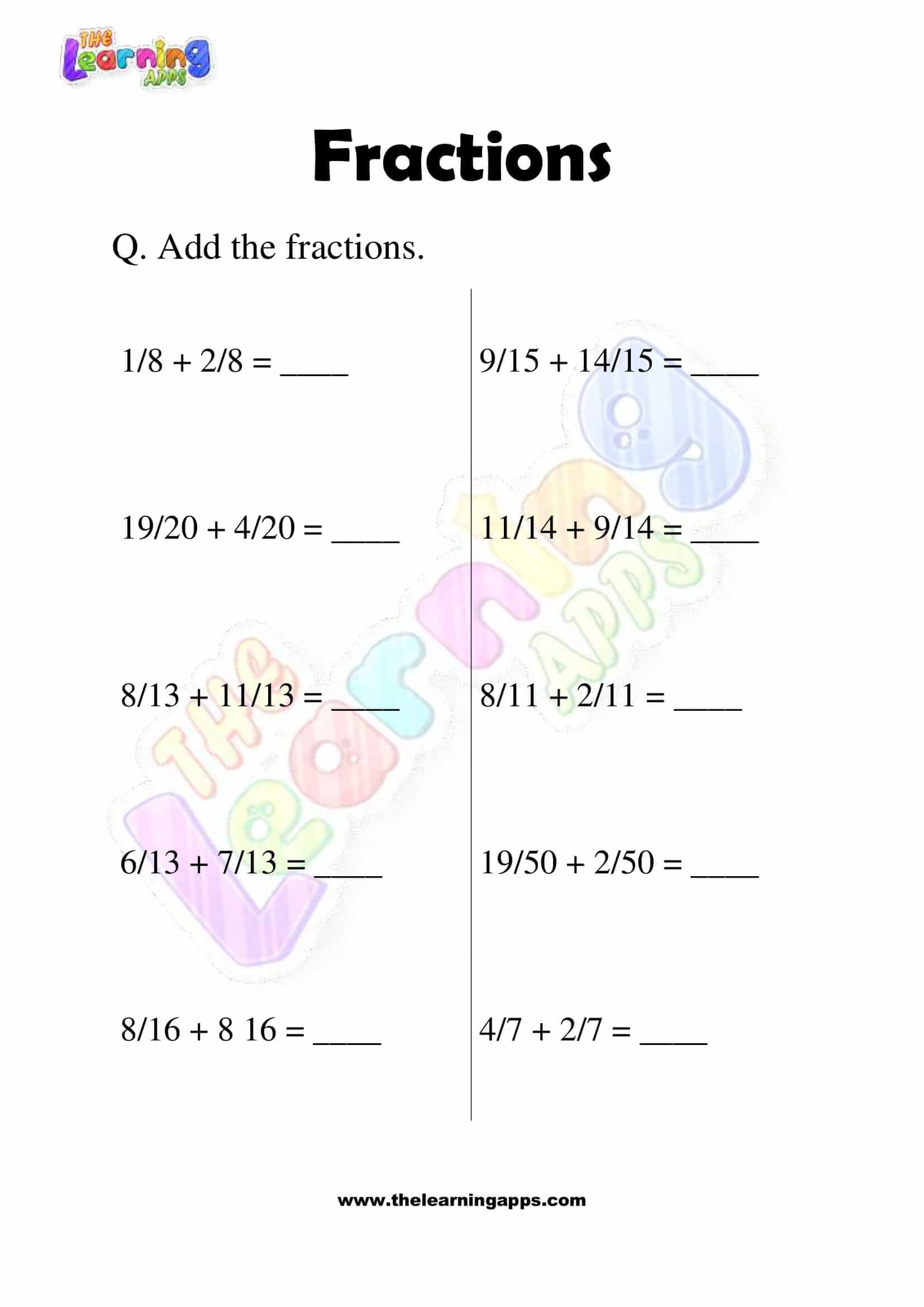 These fractions worksheets are excellent for introducing various fractions through problems involving fractions. The fraction worksheets will have different questions with various denominators. These fractions worksheets are excellent educational resources for teaching your kids various fractions ideal for 3rd graders.