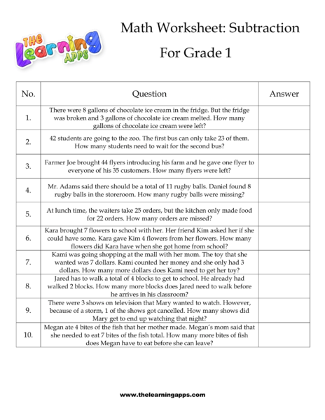 Views: 2,968 Coming soon.. Grade 1 Subtraction Worksheet 03 View All Activities coming soon Download View Share This Related PostsGrade 1 Subtraction Worksheet 07June 21, 2022Grade 1 Subtraction Worksheet 06June 21, 2022Grade 1 Subtraction Worksheet 05June 21, 2022Grade 1 Subtraction Worksheet 04June 21, 2022Grade 1 Subtraction Worksheet 02June 21, 2022Grade 1 Subtraction Worksheet 01June 21, 2022