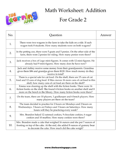 Views: 3,486 Coming soon.. Grade 2 Addition Worksheet 01 View All Activities coming soon Download View Share This Related PostsGrade 2 Addition Worksheet 11June 21, 2022Grade 2 Addition Worksheet 10June 21, 2022Grade 2 Addition Worksheet 09June 21, 2022Grade 2 Addition Worksheet 08June 21, 2022Grade 2 Addition Worksheet 07June 21, 2022Grade 2 Addition Worksheet 06June 21, 2022