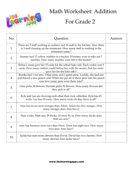 Views: 3,202 Coming soon.. Grade 2 Addition Worksheet 02 View All Activities coming soon Download View Share This Related PostsGrade 2 Addition Worksheet 11June 21, 2022Grade 2 Addition Worksheet 10June 21, 2022Grade 2 Addition Worksheet 09June 21, 2022Grade 2 Addition Worksheet 08June 21, 2022Grade 2 Addition Worksheet 07June 21, 2022Grade 2 Addition Worksheet 06June 21, 2022