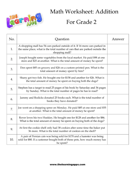Views: 5,981 Coming soon.. Grade 2 Addition Worksheet 04 View All Activities coming soon Download View Share This Related PostsGrade 2 Addition Worksheet 11June 21, 2022Grade 2 Addition Worksheet 10June 21, 2022Grade 2 Addition Worksheet 09June 21, 2022Grade 2 Addition Worksheet 08June 21, 2022Grade 2 Addition Worksheet 07June 21, 2022Grade 2 Addition Worksheet 06June 21, 2022
