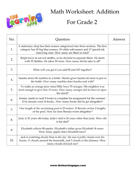 Views: 2,806 Coming soon.. Grade 2 Addition Worksheet 07 View All Activities coming soon Download View Share This Related PostsGrade 2 Addition Worksheet 11June 21, 2022Grade 2 Addition Worksheet 10June 21, 2022Grade 2 Addition Worksheet 09June 21, 2022Grade 2 Addition Worksheet 08June 21, 2022Grade 2 Addition Worksheet 06June 21, 2022Grade 2 Addition Worksheet 05June 21, 2022