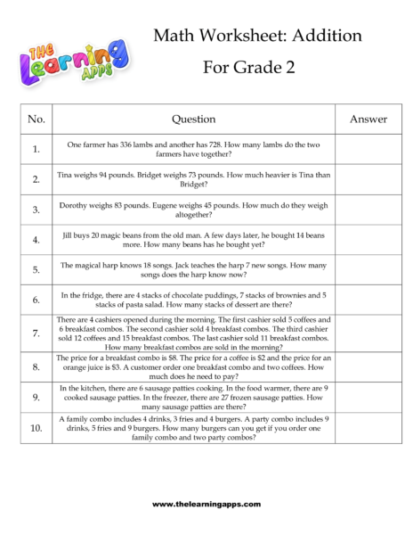 Views: 3,232 Coming soon.. Grade 2 Addition Worksheet 10 View All Activities coming soon Download View Share This Related PostsGrade 2 Addition Worksheet 11June 21, 2022Grade 2 Addition Worksheet 09June 21, 2022Grade 2 Addition Worksheet 08June 21, 2022Grade 2 Addition Worksheet 07June 21, 2022Grade 2 Addition Worksheet 06June 21, 2022Grade 2 Addition Worksheet 05June 21, 2022