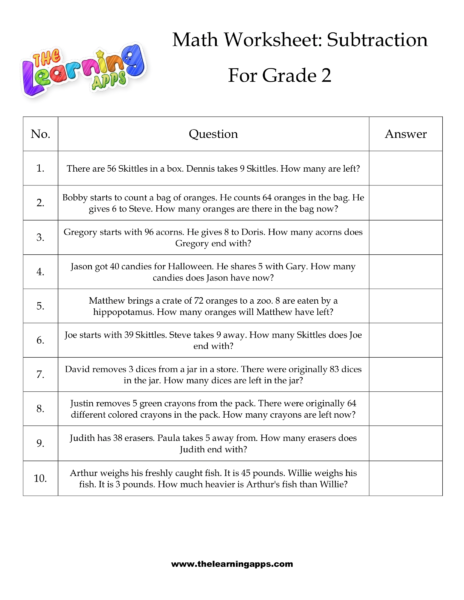 Views: 2,813 Coming soon.. Grade 2 Subtraction Worksheet 06 View All Activities coming soon Download View Share This Related PostsGrade 2 Subtraction Worksheet 13June 21, 2022Grade 2 Subtraction Worksheet 12June 21, 2022Grade 2 Subtraction Worksheet 11June 21, 2022Grade 2 Subtraction Worksheet 10June 21, 2022Grade 2 Subtraction Worksheet 09June 21, 2022Grade 2 Subtraction Worksheet 08June 21, 2022