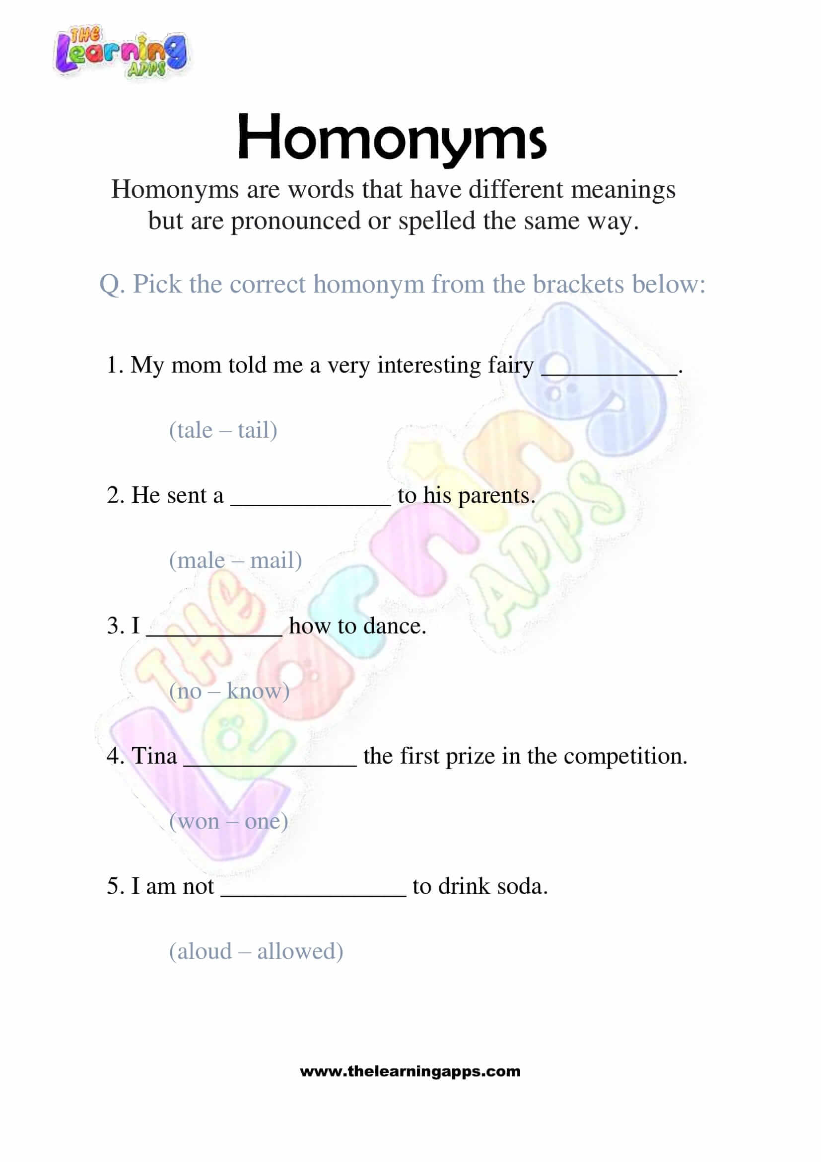 Here you will have an educational and free Homonyms Worksheet 05 for 3rd Grade kids. By doing these worksheets, kids will learn the use of Homonyms in their daily life in a fun and interactive way