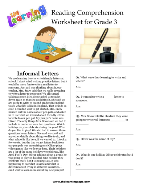 Download our free printable comprehension worksheets for grade 3. Informal Letters Comprehension Worksheet is one of the best way to engage your child in learning.