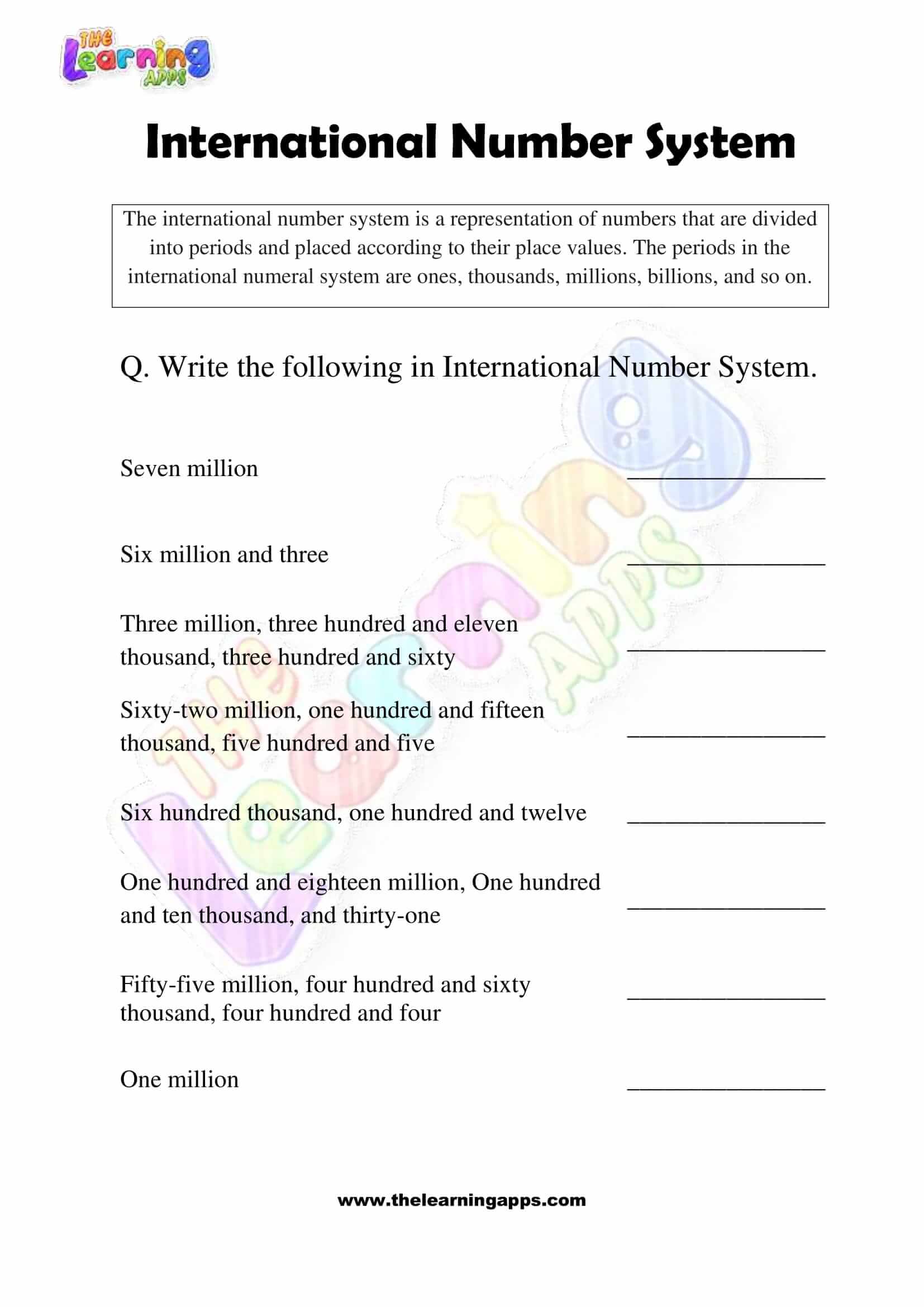International Numbers Worksheets – Grade 3 – Activity 6 View All Worksheets