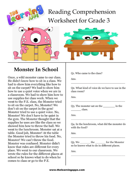 Download our free printable comprehension worksheets for grade 3. Monster In School Comprehension Worksheet is one of the best way to engage your child in learning.