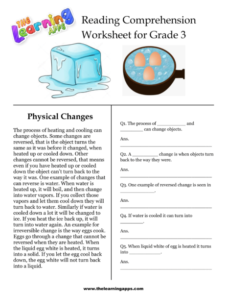 Download our free printable comprehension worksheets for grade 3. Physical Changes Comprehension Worksheet is one of the best way to engage your child in learning.
