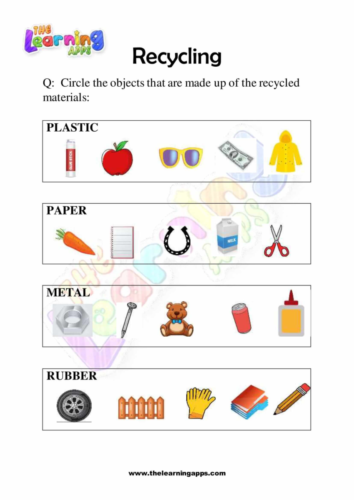 With our Recycle Worksheet 01, learn a fun approach to teaching youngsters about recycling! This intriguing worksheet is intended to make learning about recycling fun and simple. This worksheet on The Learning Apps will teach kids the value of recycling and how they can help make the world more environmentally friendly with a wealth of eye-catching, vibrant pictures and interactive games.Â