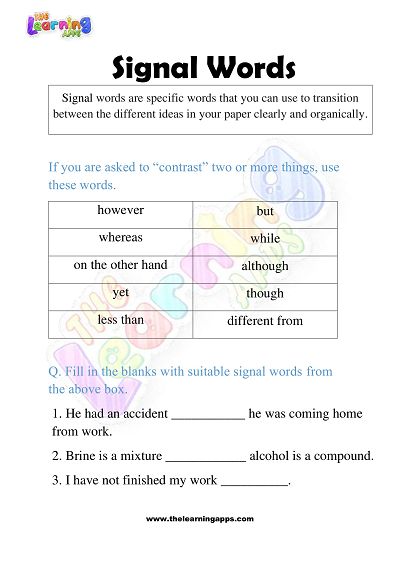 Signal Words Worksheets for Grade 2 – Activity 6 View All Worksheets