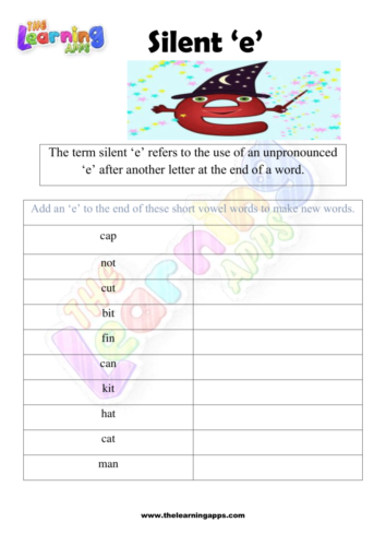 Views: 3,219 Silent E 01 View All Activities Download Silent E worksheet 01 for kids to improve their skills. The silent E rule is one of the most essential rules of English learning. It helps children comprehend how to blend words and pronounce them properly without hesitating. Download View Share This Related PostsSilent E Worksheet 10June 28, 2022Silent E Worksheet 09June 28, 2022Silent E Worksheet 08June 28, 2022Silent E Worksheet 07June 28, 2022Silent E Worksheet 06June 28, 2022Silent E Worksheet 05June 28, 2022
