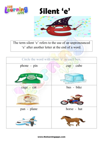 Views: 3,235 Silent E 09 View All Activities Download Silent E worksheet 09 for kids to improve their skills. The silent E rule is one of the most essential rules of English learning. It helps children comprehend how to blend words and pronounce them properly without hesitating. Download View Share This Related PostsSilent E Worksheet 10June 28, 2022Silent E Worksheet 08June 28, 2022Silent E Worksheet 07June 28, 2022Silent E Worksheet 06June 28, 2022Silent E Worksheet 05June 28, 2022Silent E Worksheet 04June 28, 2022