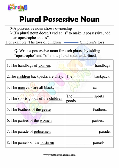 Singular and Plural Possessive Noun Worksheets – Activity 7 View All Worksheets