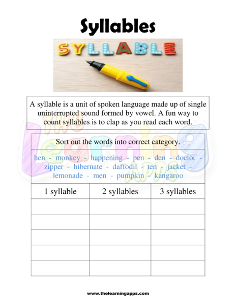 Download this Syllable Worksheet 02 for students to improve their literacy while having fun at home or in the classroom. By breaking words down into manageable syllables, your kid will enjoy building a solid foundation for their language improvement.