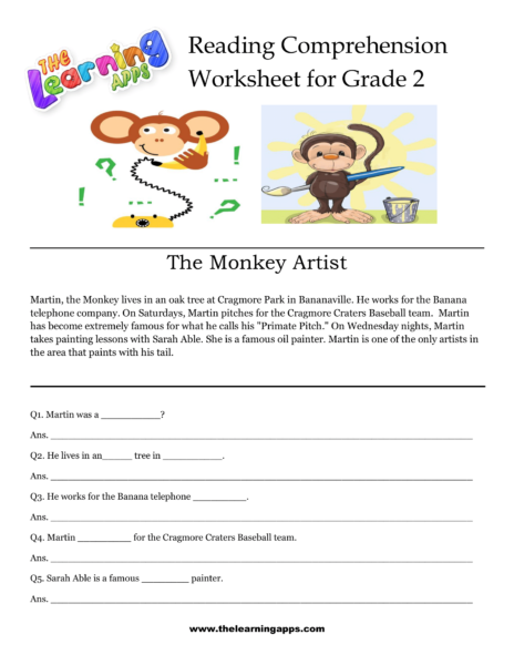 Download our free printable comprehension worksheets for grade 2 available. The Monkey Artist Comprehension worksheet is one of the best way to engage your child in learning.