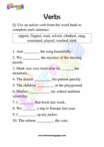 Verbs Worksheets for Grade 3 – Activity 9 View All Worksheets